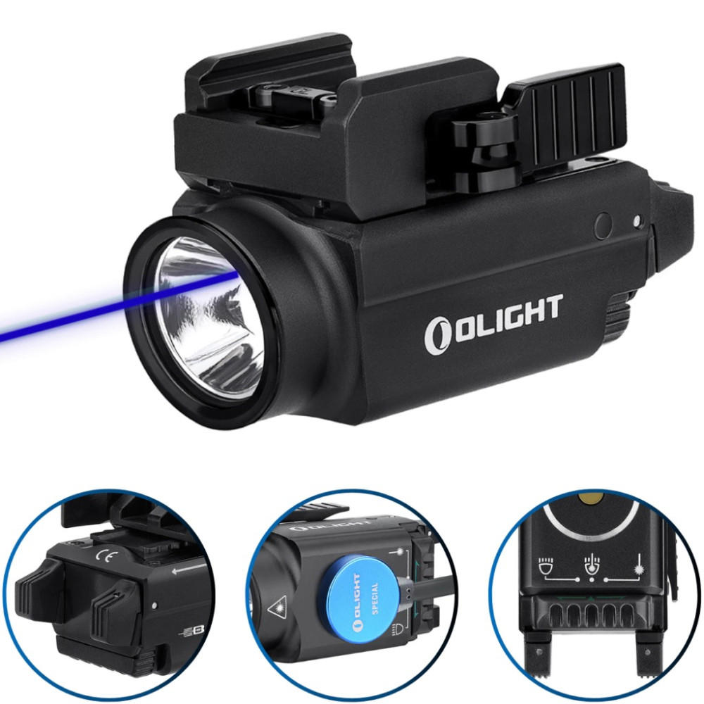Marca: Olight / Modelo: Baldr S BL Laser Azul / Bateria interna recarregável de lítio 380mAh (Inclusa) / Trilho deslizante exclusivo da marca que possibilita ajustar livremente a posição da lanterna no trilho do armamento / Carregamento via cabo USB Magnético / Distância máxima: 130 metros / Brilho máximo: 800 lúmens / À prova d’água IPX4 / Material: Alumínio 7075 T6 / LED Branco / Acionador ambidestro / Modo Strobo: Não